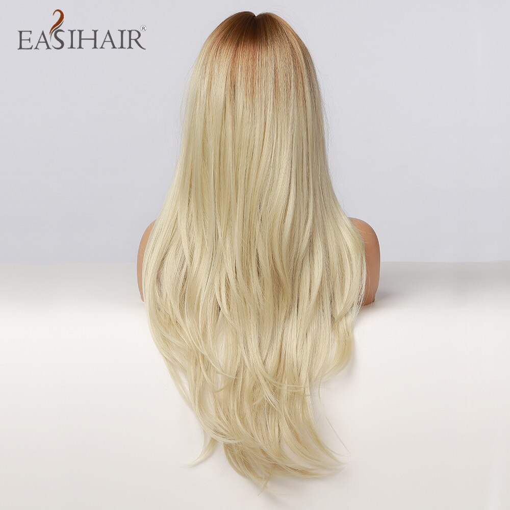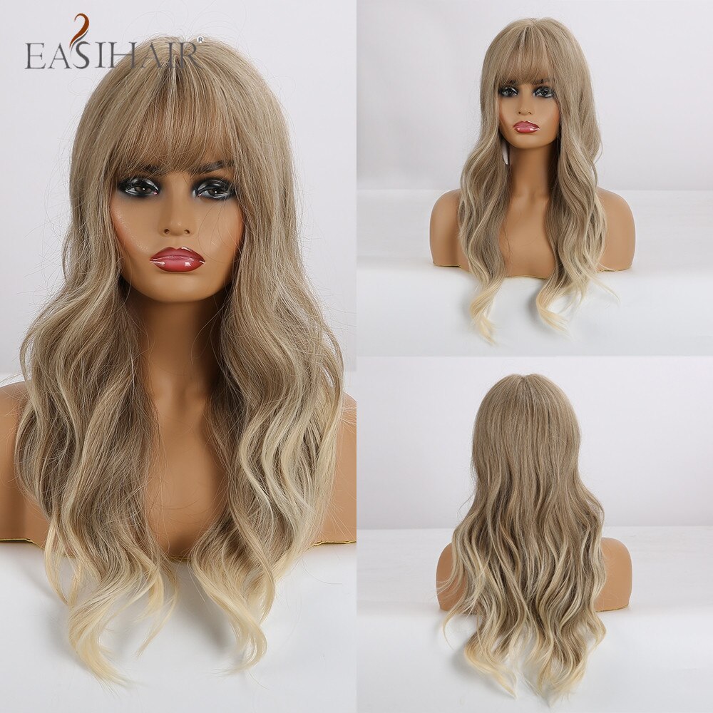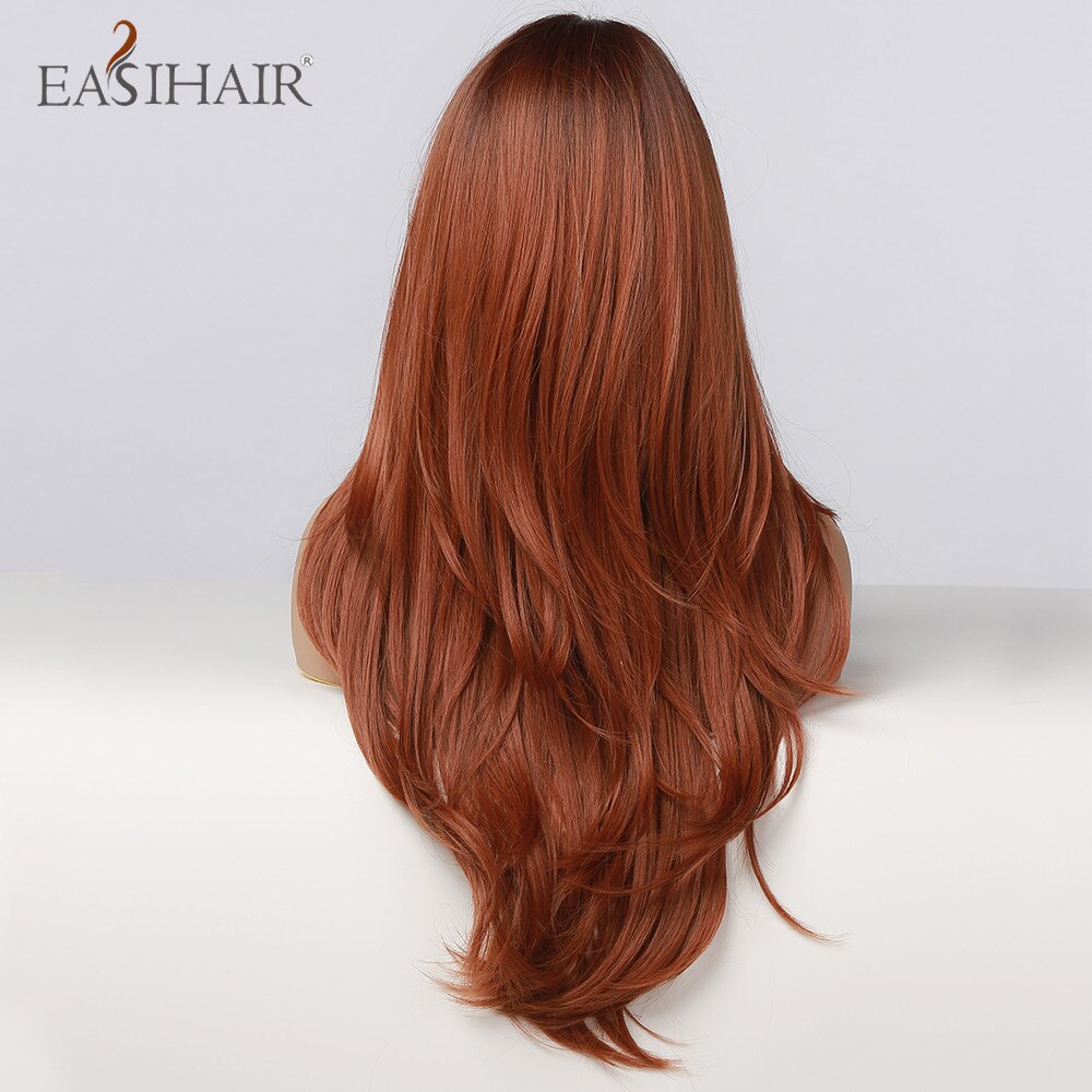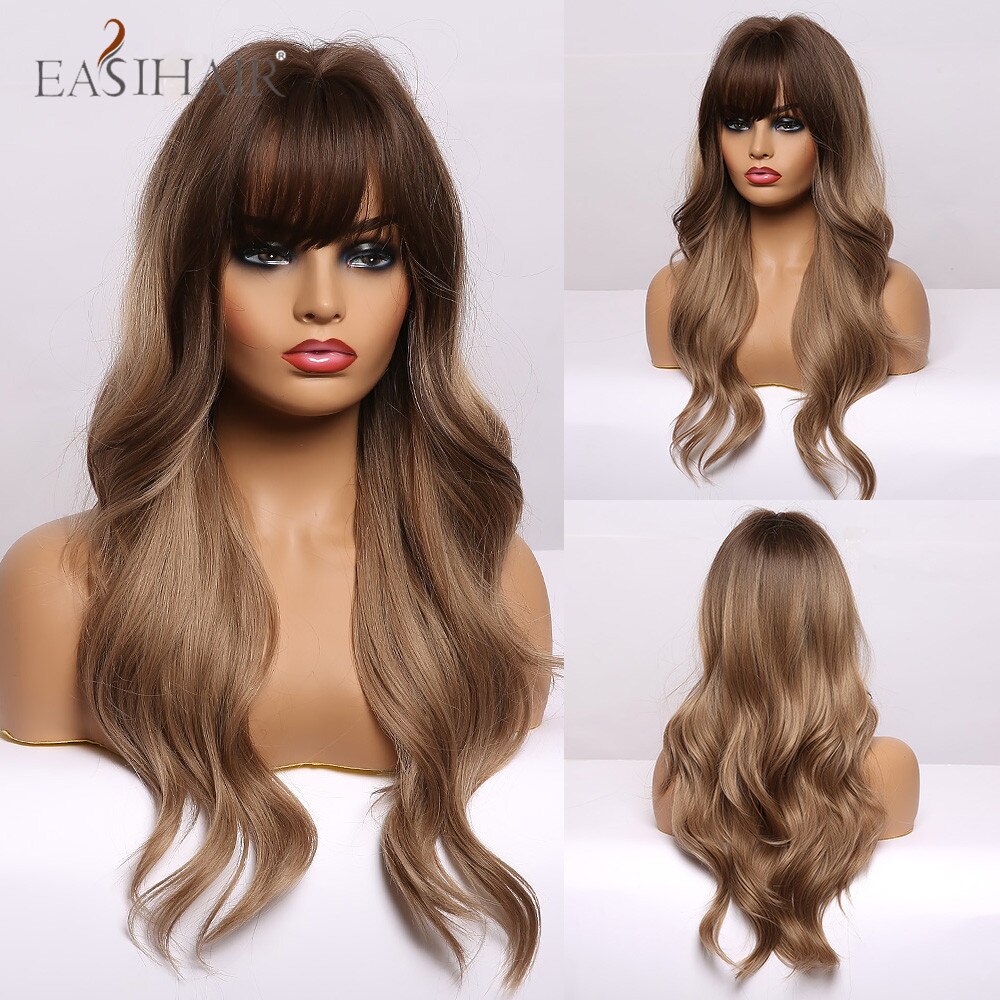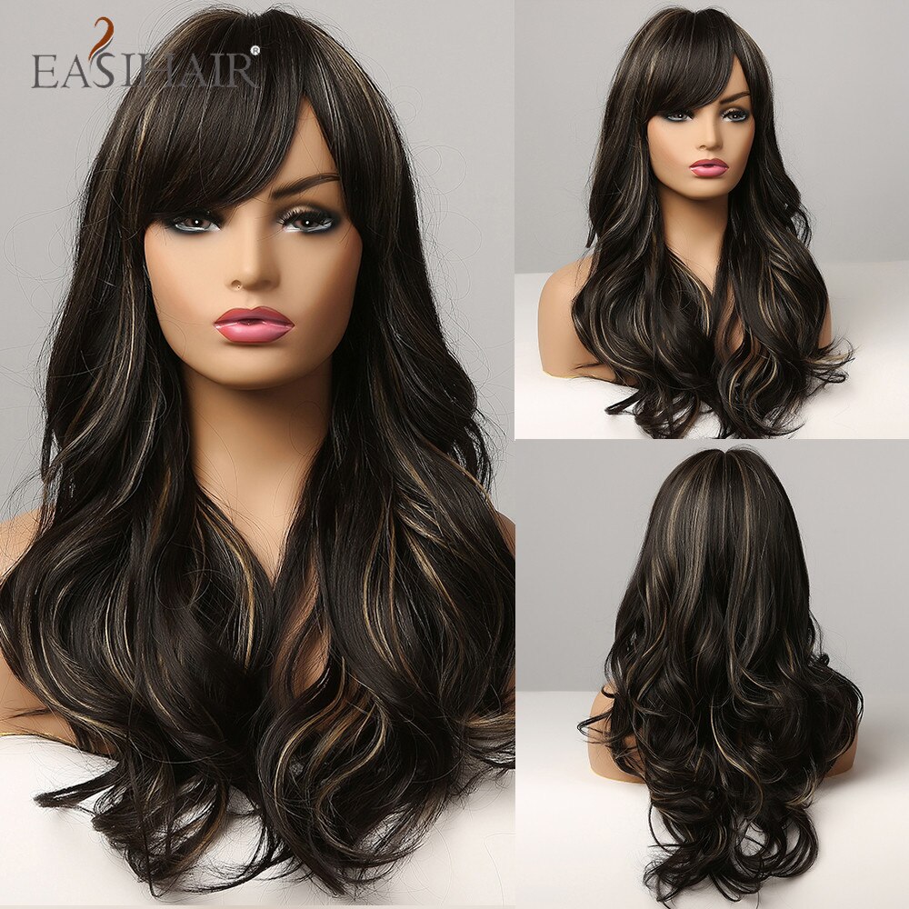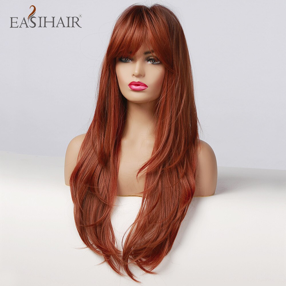 EASIHAIR Rot Braun Dunkle Wurzel Synthetische Lange Wellenförmige Perücken mit Pony Farbige Fiber Haar Cosplay Perücken für Schwarze Frauen Wärme beständig
