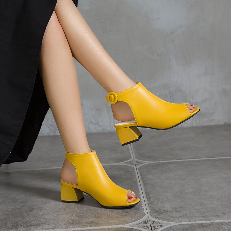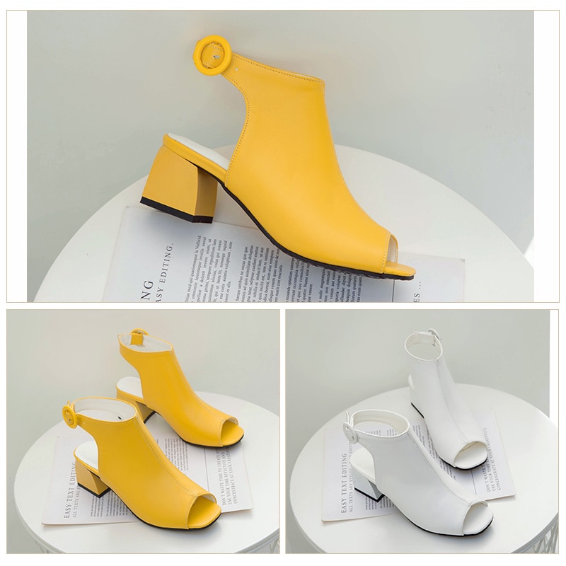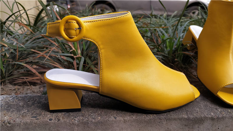 Frauen Sandalen Peep Toe Plus Größe 43 44 45 46 47 48 Schuhe Handgemachte Schwarz Gelb Koreanischen Stil Hohe Quadratische block Heels Schnalle Party weiß sexy mode moderne büro dame