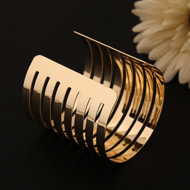 Gold Silber Farbe Hohle Breite Manschette Armbänder Armreifen Für Frauen Männer Punk Geometrische Legierung Offene Große Armreif Armband Mode Schmuck