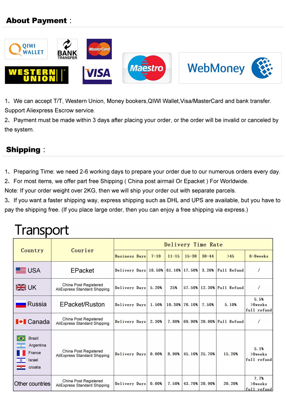 - Delivery address: China