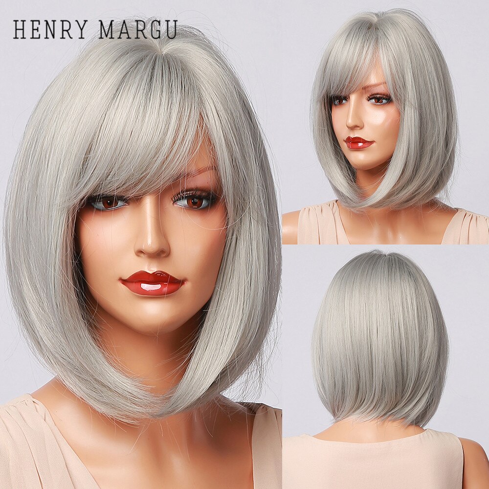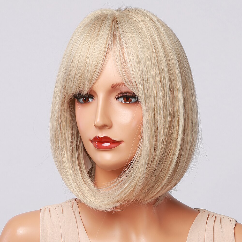 HENRY MARGU Platin Blonde Perücken Cosplay Partei Täglichen Perücken Kurze Gerade Bob Synthetische Perücken mit Pony für Frauen Hitze Beständig
