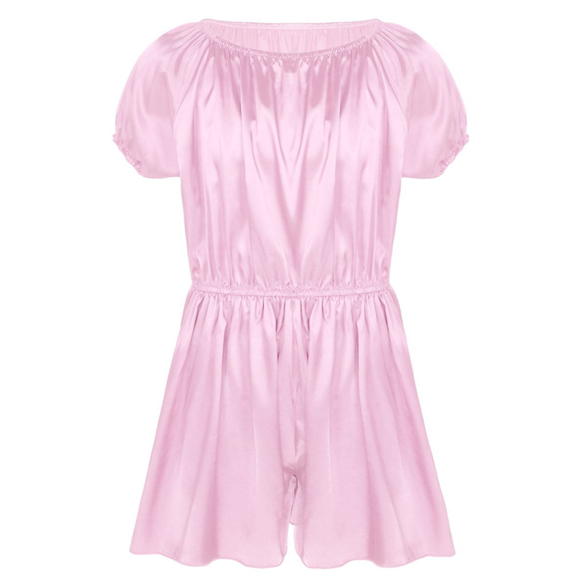 Herren sissy glatte satin phantasie kleid hosen, ziehen auf verschluss.