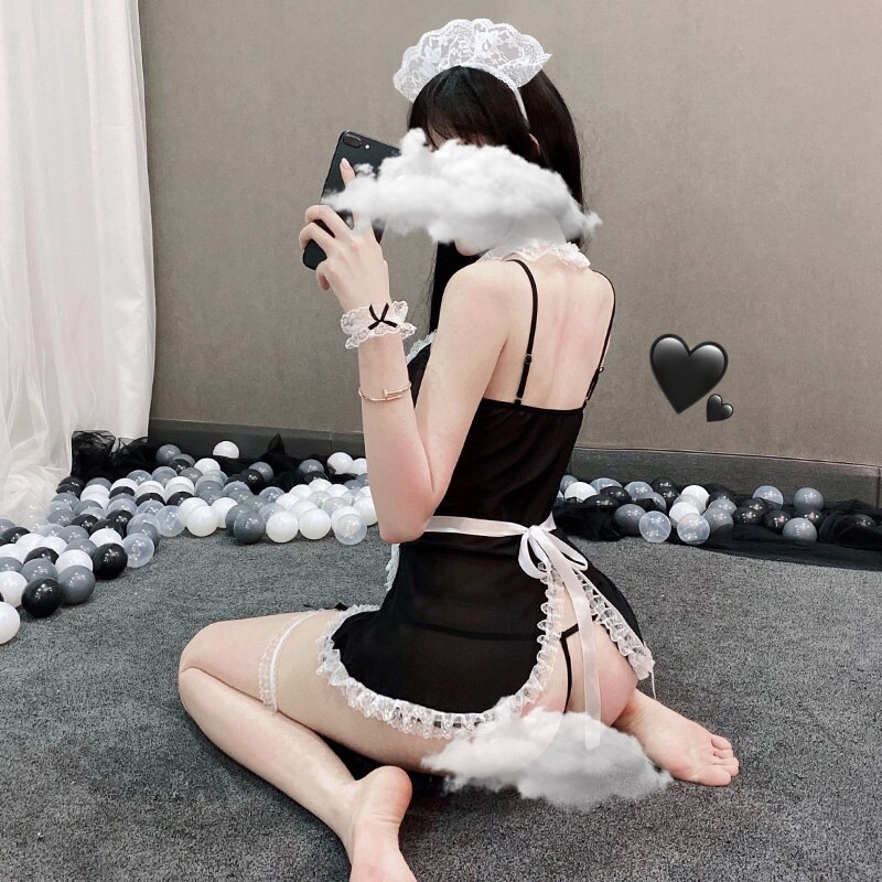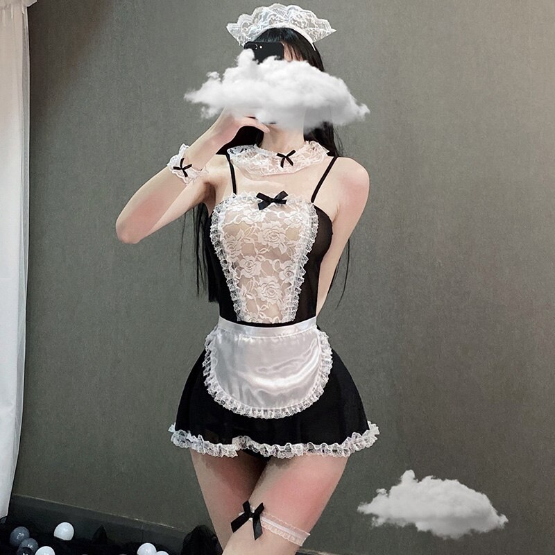 Sexy Erotische Dessous Französisch Schürze Maid Diener Lolita Kostüm Babydoll Kleid Lesben spielen Cosplay Spitze Uniform Set Für Frauen