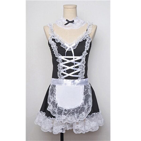 Sexy Rock für Sex Frauen Transparent Mesh Maid Kostüm Sommer Sexi Kawaii Dessous Unterwäsche Set Maid Kleid Schürze Bogen T-hose